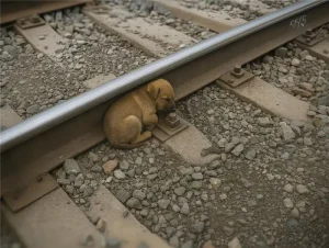 And yet, even as the train thundered closer, the puppy didn’t run. It was shielding something underneath its body.