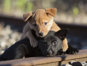 Tracks pawed at his reflection in the glass door while Switch tried to climb onto the couch, yipping at his brother for help.
