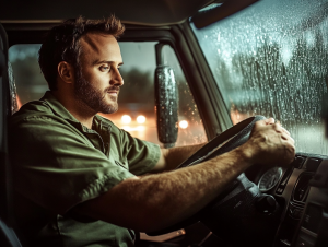 Panic clawed at his chest. This wasn’t a traffic stop; it was a trap. He slammed the gear into reverse, wheels screaming against slick pavement. The sedan’s driver lunged forward, shouting something lost in the storm.